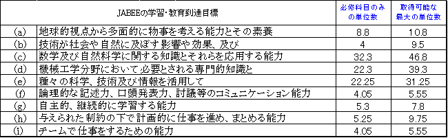このように本コースのカリキュラムでは、必修科目を履修することでJABEEの指定する学習・教育達成目標の全ての項目を網羅できるように設計されています.